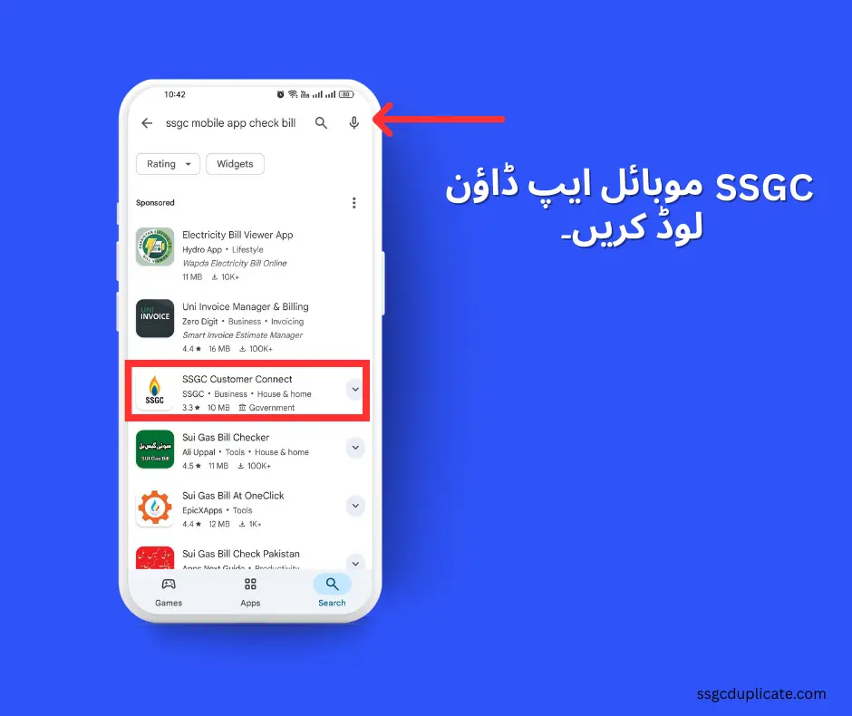 Step 1: Download the SSGC mobile app. Open the Google Play Store and search for “SSGC Mobile App Bill Check.” You may see some irrelevant apps in the list, but make sure to find the official app named “SSGC Connect Customer.”