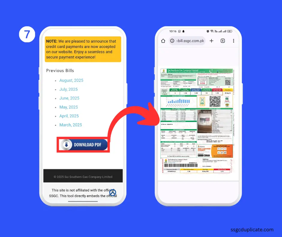 After a few seconds, you will be able to see your SSGC duplicate gas bill online.